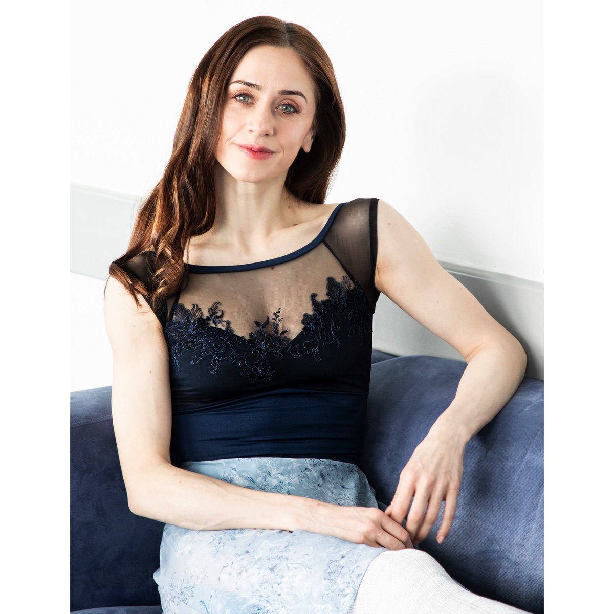 Trusa de manga francesa con un color navy, tranquilo que se funde elegantemente con la piel.