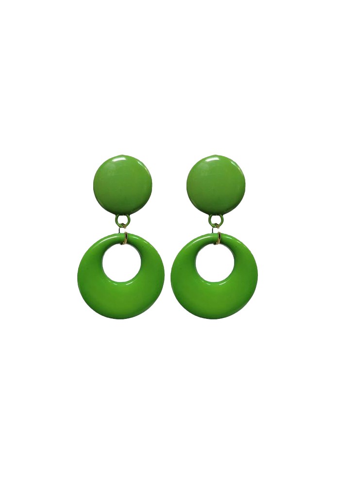 Clásico pendiente de aro en plástico como complemento imprescindible para el look flamenco. Son unos pendientes económicos muy sencillos y ligeros, pero que son perfectos para embellecer el rostro. Fabricación española.