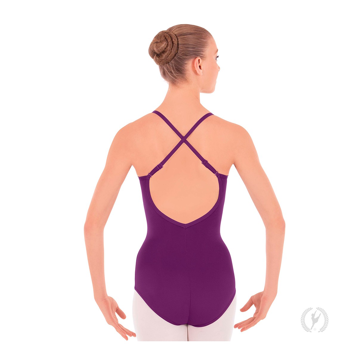 Confeccionado con microfibra Tactel® de alta calidad, este maillot camisola con tirantes ajustables convertibles proporciona la máxima comodidad y durabilidad y está diseñado para un ajuste personalizado. Las correas de los hombros se ajustan en longitud para un ajuste óptimo y cuentan con broches de metal del mismo color que hacen que el cambio de una camisola a una espalda cruzada sea fácil y seguro. El forro frontal completo exclusivo de Eurotard elimina la humedad y controla el olor, lo que mantiene a los bailarines frescos y limpios durante el movimiento. Un modesto escote redondo y una espalda en "V" brindan cobertura y estilo.