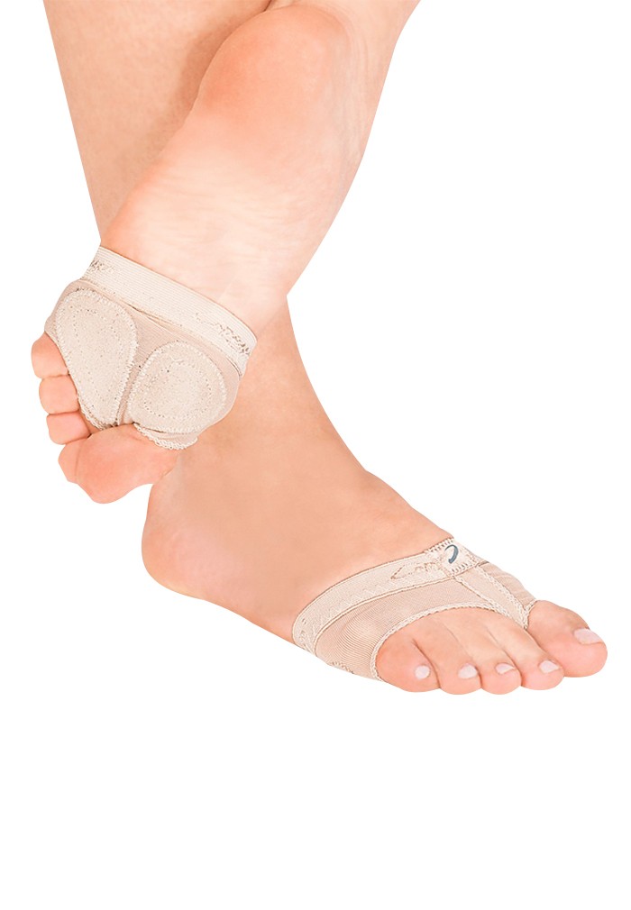 footUndeez™ create the illusion of dancing barefoot. Its four way stretch spandex material is both breathable and stable thanks to the sewn in fore foot pads. The one-sided, Capezio logo elastic holds footUndeez™ in place during every pirouette. Recommended for lyrical and modern classes.