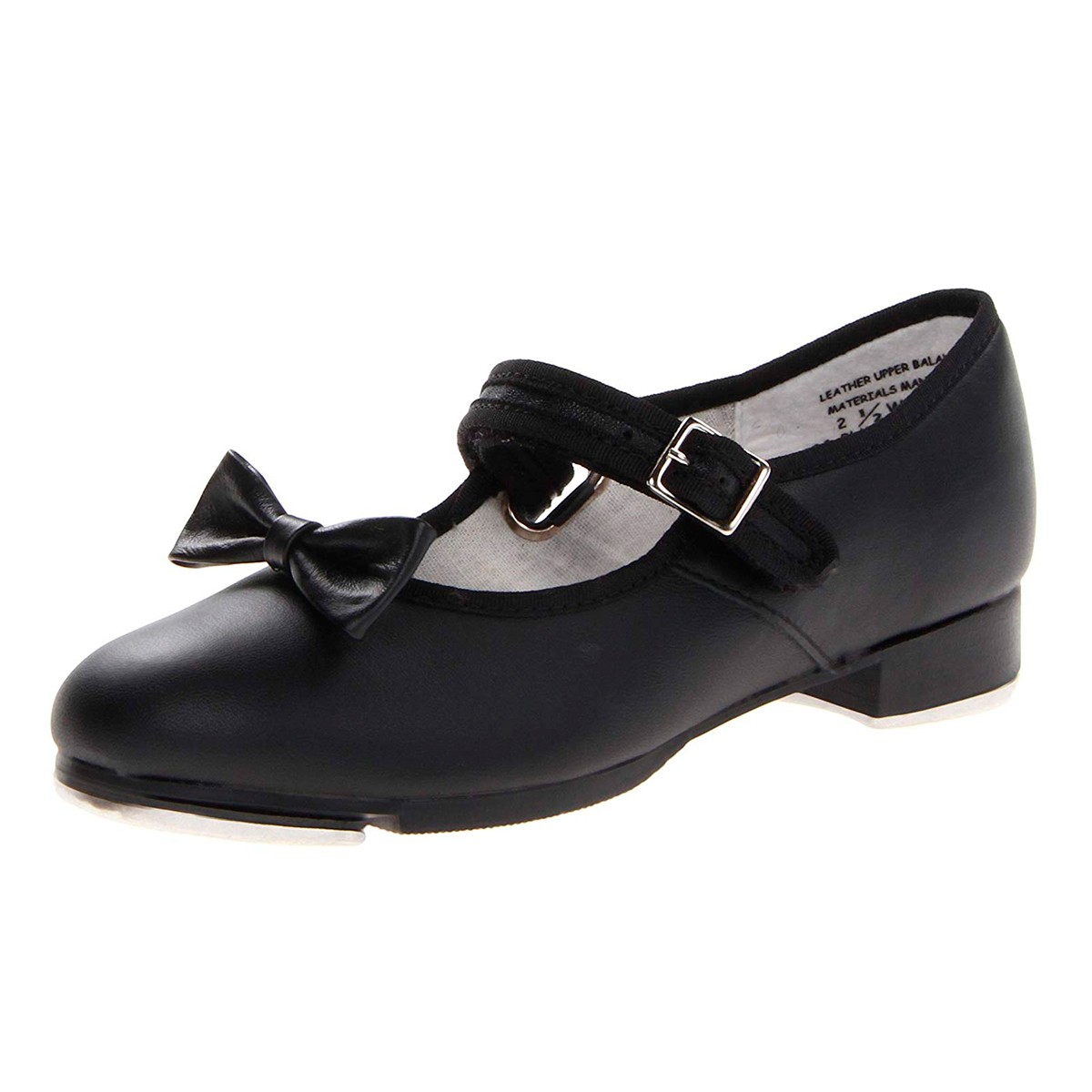 Take your first steps with assurance in the Mary Jane Tap Shoe. Comes in shiny, black patent leather, black PU leather or caramel PU leather. Features non-slip heel counter, soft cotton lining and foam insole for shock absorption. High quality Capezio® Tele Tone® toe and heel taps create a deeper resonating sound. Buckle closure eliminates the worry of your shoe slipping off during warm-ups. Highly recommended for introductory tappers.