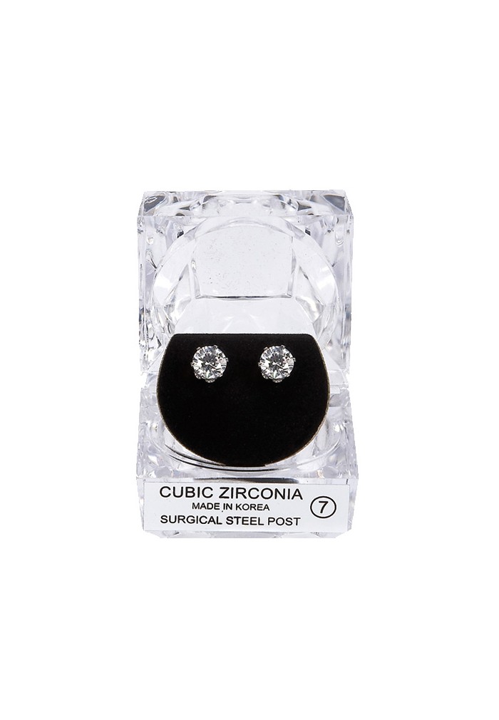 Los aretes de poste con circonitas cúbicas de 8 mm están hechos de acero quirúrgico de alta calidad. Estos aretes son hipoalergénicos y vienen en una elegante caja de exhibición de cristal.